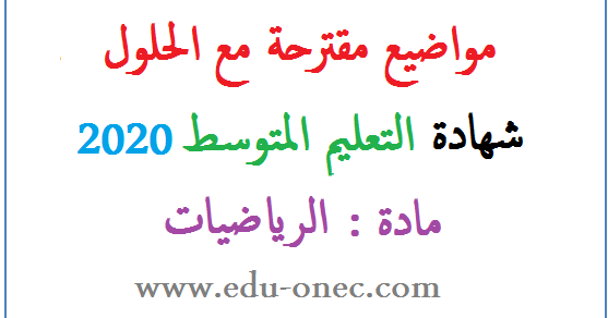 مواضيع شهادة التعليم المتوسط 2020 رياضيات مع الحلول