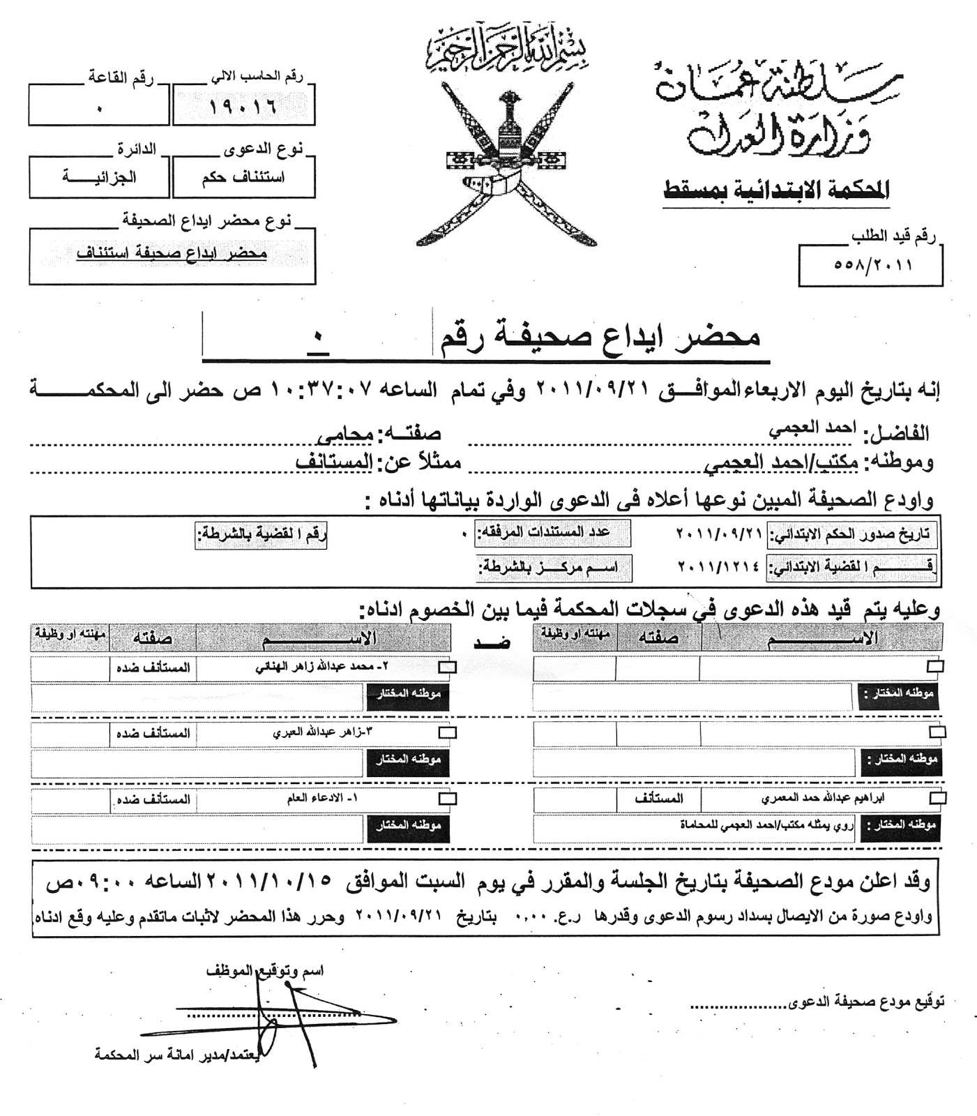 نموذج صحيفة دعوى مدنية سلطنة عمان