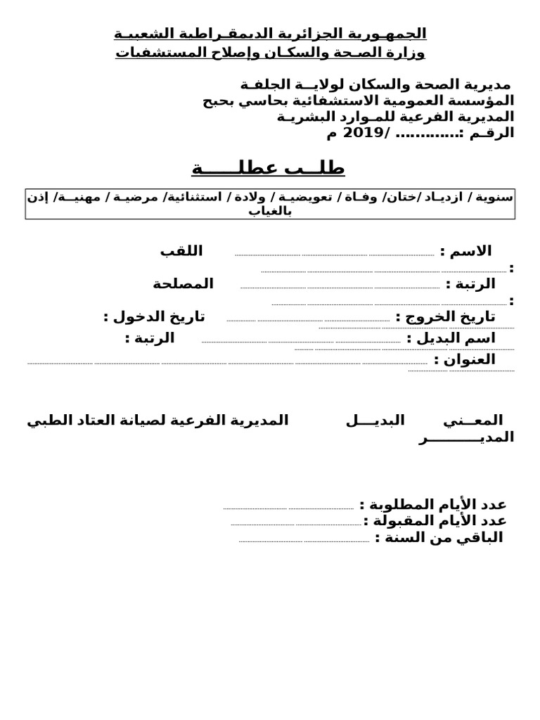 نموذج طلب إجازة سنوية وزارة الصحة